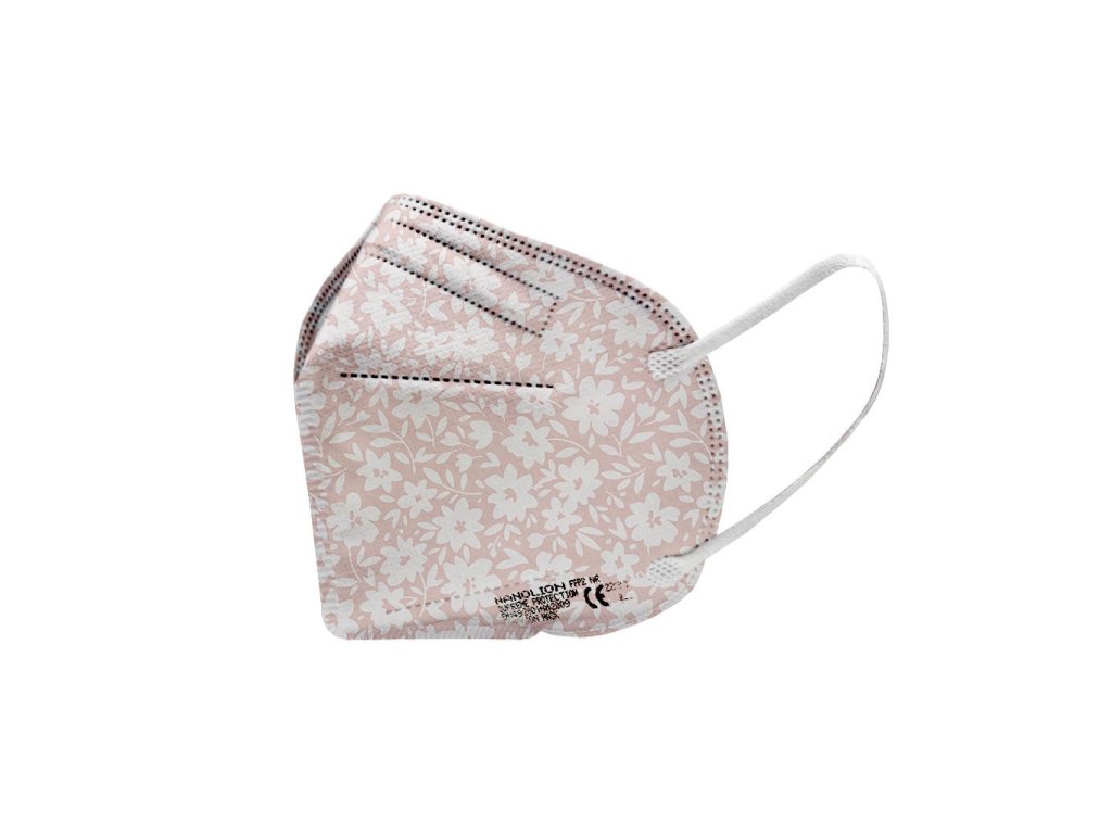 5X Český ultratenký NANO respirátor FFP2 - Béžové kytky