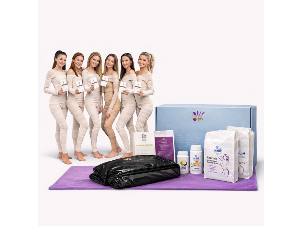 Profesionální kompresní tělový zábal pro domácí použití, který podporuje odvodnění organismu, formování postavy a zpevnění pokožky. Kombinace aktivní směsi, minerálů a bandáží napomáhá stimulaci lymfatického systému a může vést k úbytku centimetrů v problémových partiích už po první kúře.