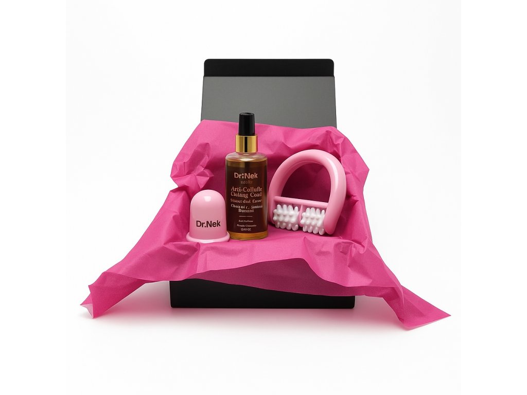 Obsahuje masážní roller proti celulitidě, anticelulitidní masážní olej s arganovým, skořicovým a kávovým olejem a silikonovou masážní baňku pro dokonalé prokrvení a zpevnění pokožky.