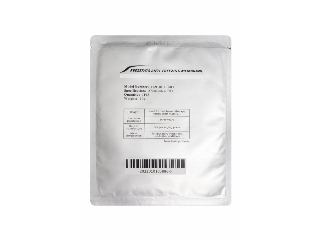 Schützt die Haut effektiv vor direkter Temperatureinwirkung. Es ermöglicht eine schnelle Kälteleitung in das Unterhautgewebe zu den eingelagerten Fettzellen, sodass die Wirkung der Kryolipolyse möglichst effektiv ist. Schützt den oberen Teil der Haut vor der mechanischen Einwirkung des Saugkopfes. Die Frostschutzmembran wurde während der Entwicklung erfolgreich für den Einsatz bei Temperaturen deutlich unter dem Gefrierpunkt getestet.