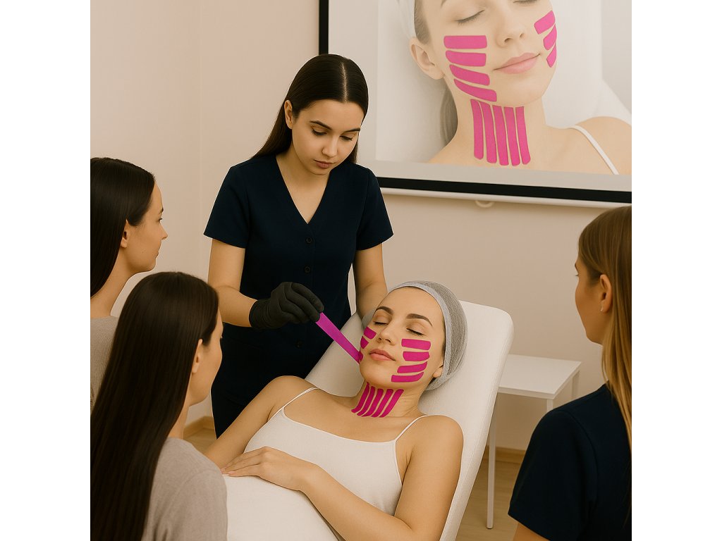 Im theoretischen Teil besprechen wir alles, was für die korrekte Anwendung von Tapes im Gesichts- und Halsbereich wichtig ist, von Anamnese, Allergietest, richtige Ausrüstung beim Tapen, Hautvorbereitung, Tapearten Anwendung, Funktionalität von Tapes etc. Im ersten Teil erproben Sie an einem Modell verschiedene Arten der Tape-Applikation im Bereich von Gesicht und Hals. Der Kurs endet mit der Übergabe eines Abschlusszertifikats . Nach Abschluss des Kurses stehen Ihnen unsere Dozenten für die Beantwortung all Ihrer Fragen zur Verfügung.