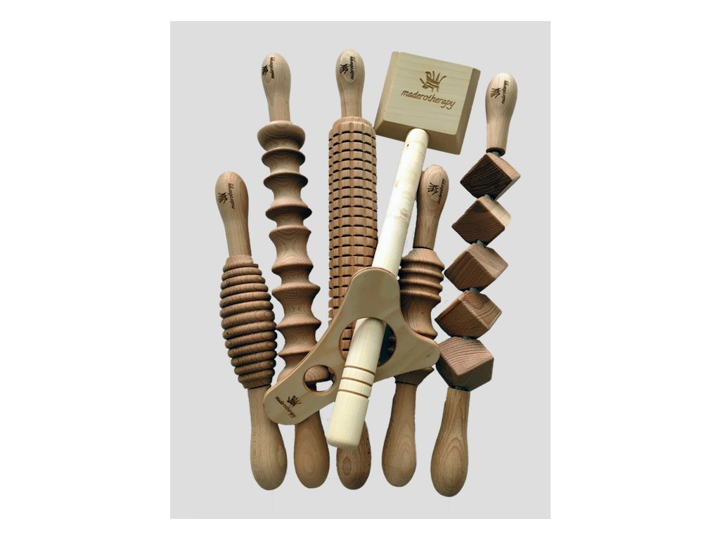 Maderoterapie je speciální masážní technika, která napomáhá odstraňování celulitidy. Zahrnuje řadu dynamických hmatů, které se provádí pomocí různých dřevěných pomůcek (válečky,…).