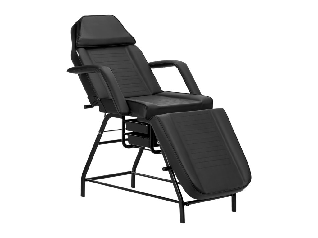 The beauty chair with two trays is practical equipment that enhances work in many specialized offices, including beauty, massage, or tattoo salons. It is suitable for those seeking a simple and functional piece of beauty furniture. The sliding compartments located under the seat ensure that the most important tools and preparations are always at hand.
