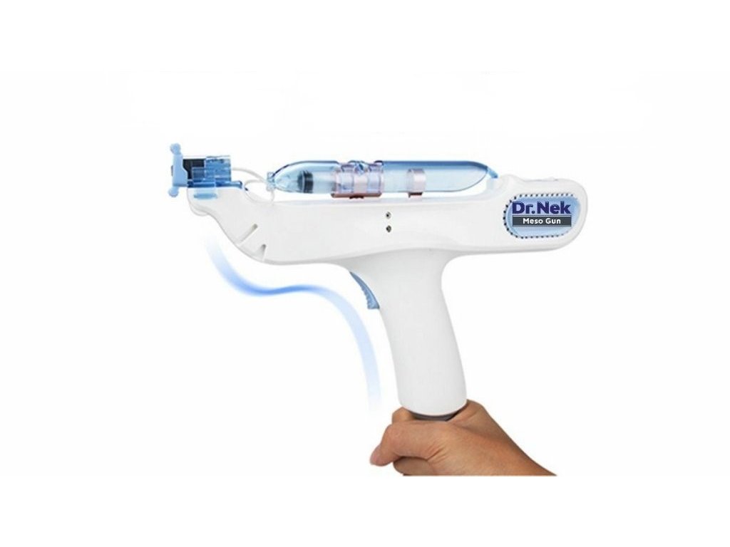 A Dr.Nek Meso Gun segítségével bármilyen aktív hatóanyag bejuttatható az arcba vagy a test problémás területeire.