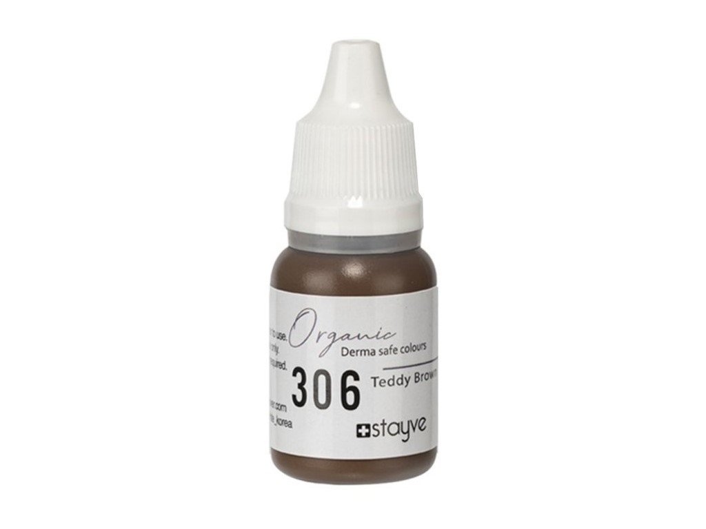 - Stayve nr. 306 Teddy Brown este o nuanță maro mediu, delicată, cu subtonuri neutre, ideală pentru machiajul permanent al sprâncenelor.