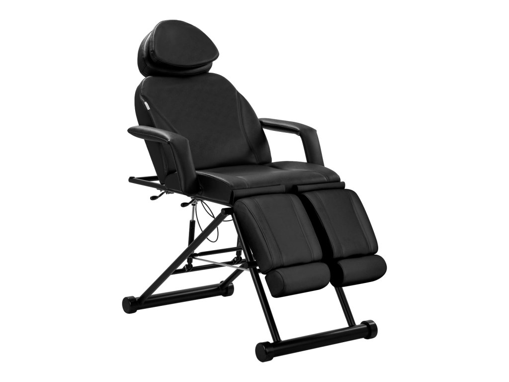 Cu o deschidere pentru cap ascunsă sub pernă, este ideal pentru terapii faciale și corporale. Mânerele stabile, segmentate, se mișcă odată cu spătarul și sunt ușor de doborât pentru economisirea spațiului.