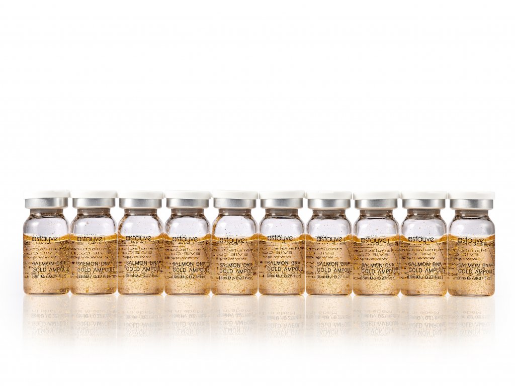 Vysoko účinný produkt pre potreby starnúcej pleti a na omladenie a obnovu pleti zvnútra. Má neuveriteľný účinok na rast buniek a regeneráciu tkaniva. Je to veľmi účinný produkt na udržanie protizápalových vlastností pokožky a zdravú regeneráciu pokožky. Táto ampulka je špeciálne vyvinutá na ošetrenie mezoterapiou/mikroneedlingom (Dermapen, Meso gun) . DNA lososa je veľmi účinná pri riešení problémov so starnutím pokožky a jej účinnosť a bezpečnosť bola preukázaná prostredníctvom dermatologických kliník. Opravuje a omladzuje pokožku zvnútra von. Má úžasný účinok na regeneráciu tkaniva a rast buniek. Toto sérum obsahuje 7 rôznych druhov peptidov a tiež 0,08 ml (1 %) PDRN na 8 ml. PDRN pomáha pri hojení a regenerácii. Obsahuje tiež 99,9 % (24-karátový) prášok z čistého zlata, ktorý je veľmi účinný pri čistení pleti a zvyšuje rozjasňujúci účinok čistením.